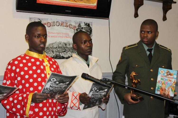 Почти полтора часа выступающие читали вслух "Конька-Горбунка". Необычным получилось начало сказки – его зачитали студенты ТВВИКУ из Конго. Присоединились к ним и почетные гости марафона, в том числе депутат областной думы Виктор Рейн.
