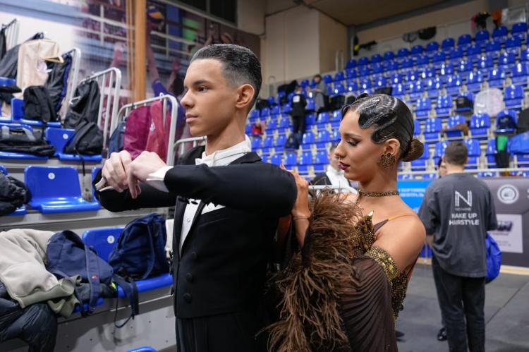 Пара Виктория Гертье и Артем Таченко в клубе "Ника" образовалась летом 2024 г. На городских соревнованиях в декабре стали первыми в категории "молодежь С-класс" стандартной программы и третьими – в латиноамериканской. В региональном первенстве участвуют впервые.