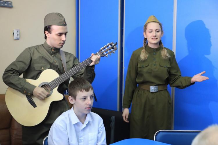 Вместе с ветераном гости вместе любимые песни военных лет, пообщались и поблагодарили победителя за его подвиг и труд.