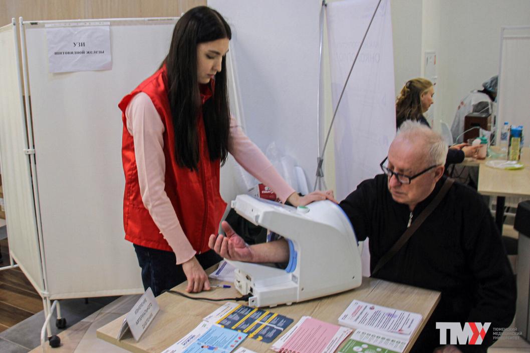 Волонтеры в палатке здоровья измеряют артериальное давление, проводят исследование уровня глюкозы и холестерина в крови, анонимное тестирование на ВИЧ. Также предлагают пройти биоимпедансометрию – метод быстрой диагностики состава тела человека, который анализирует количество жира и жидкости в организме, мышечной и костной массы, метаболизм.