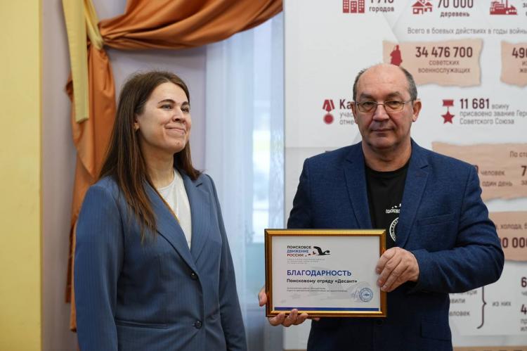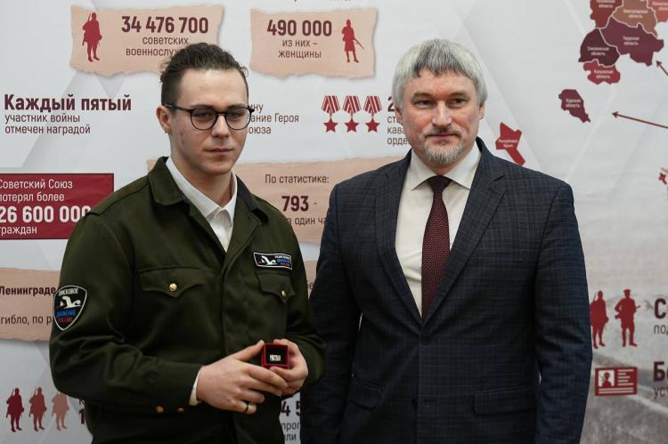 Также в этот день знаком отличия "Участник региональной базы данных талантливых детей и молодежи Тюменской области" наградили воспитанников отрядов, ставших юными поисковиками в 2024 году. Их отобрали по результатам областного конкурса "Нам дороги эти позабыть нельзя".