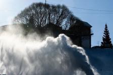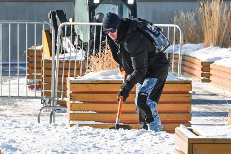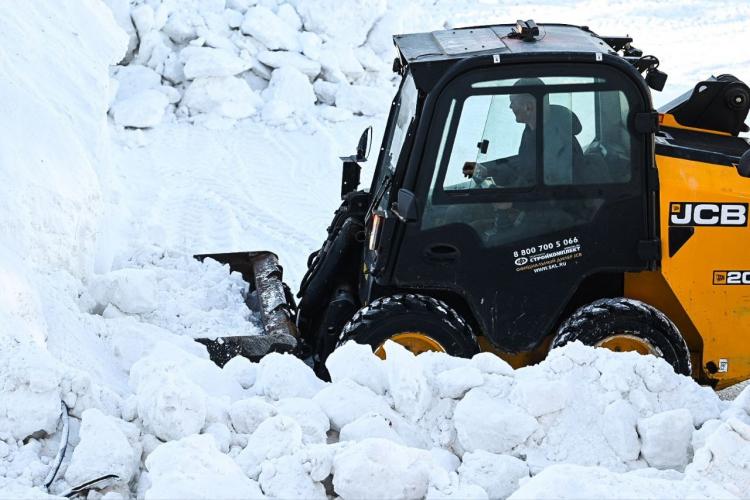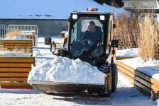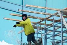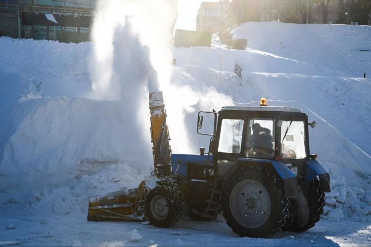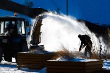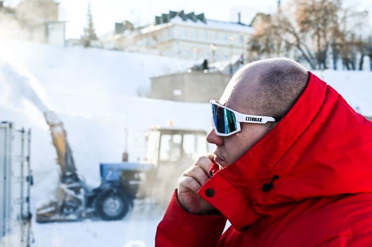 "У нас пока создан здесь черновой вариант. Просто снег нужно забрасывать достаточно высоко и одним видом техники это делать не получается, поэтому мы работаем в несколько этапов. Трактор со шнекоротором закидывает нам на верхний ярус снег, а дальше мы вручную перебрасываем его выше, чтобы сформировать необходимый рельеф для установки фигур", - пояснил руководитель проекта по застройке Николай Голубев.