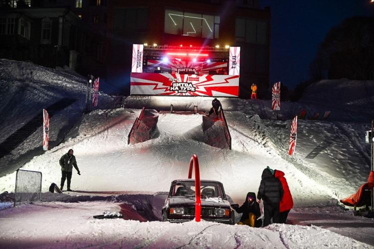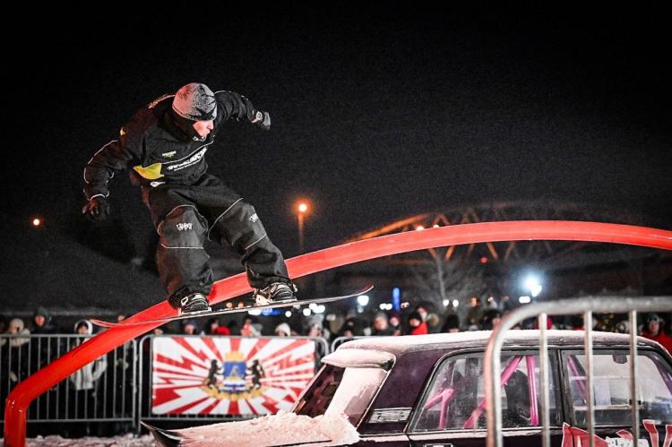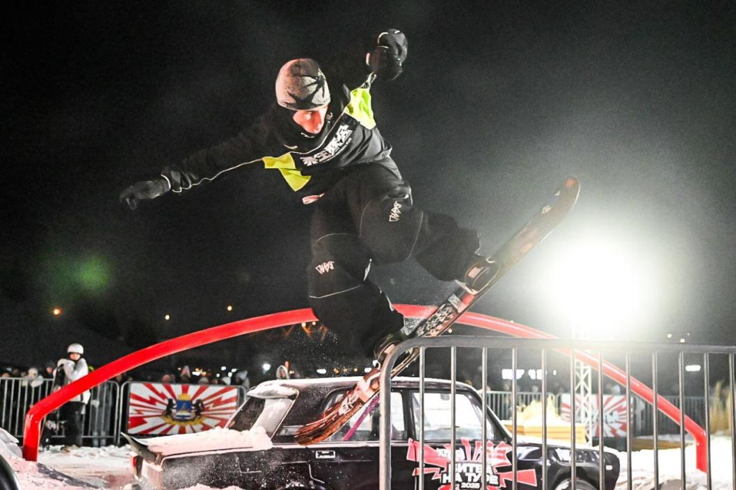 Фестиваль экстремальных видов спорта "Битва на Туре" проходит на набережной у мультицентра "Контора пароходства" 22 февраля. В этом году райдеры из разных регионов России сражаются в дисциплине джиббинг.