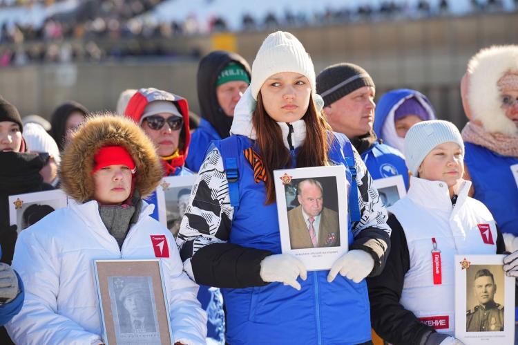 Представители "Волонтеров Победы", "Движения первых", добровольцы сегодня вынесли на лед 130 портретов тюменцев-героев Великой Отечественной войны.