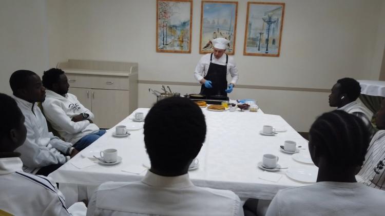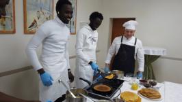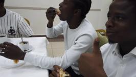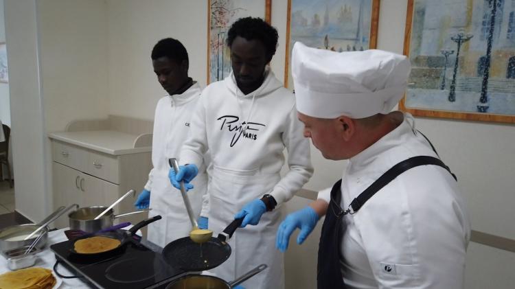 Африканцы могли сами попробовать сделать блины. Для них заранее подготовили тесто хорошей консистенции и пластичности. По словам Юсупа Коду Коре, который мечтает стать адвокатом, блины ему и его товарищам очень понравились.