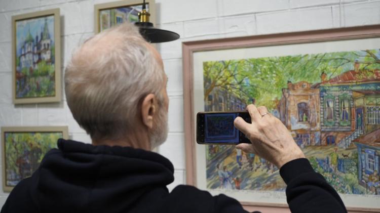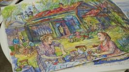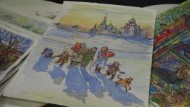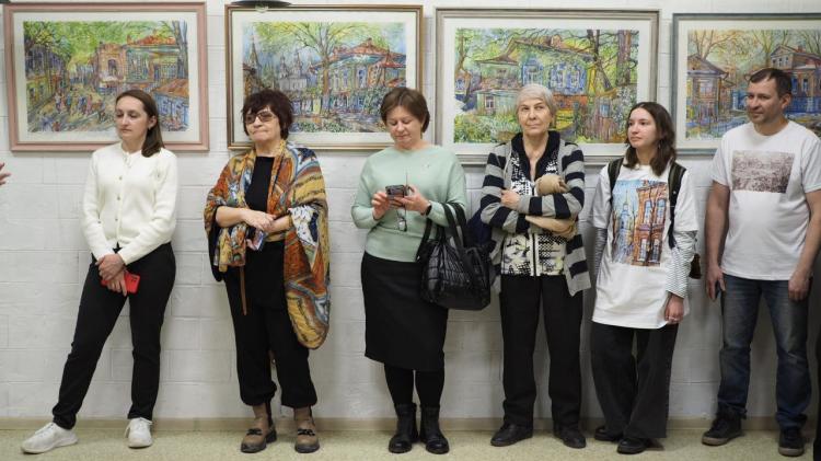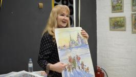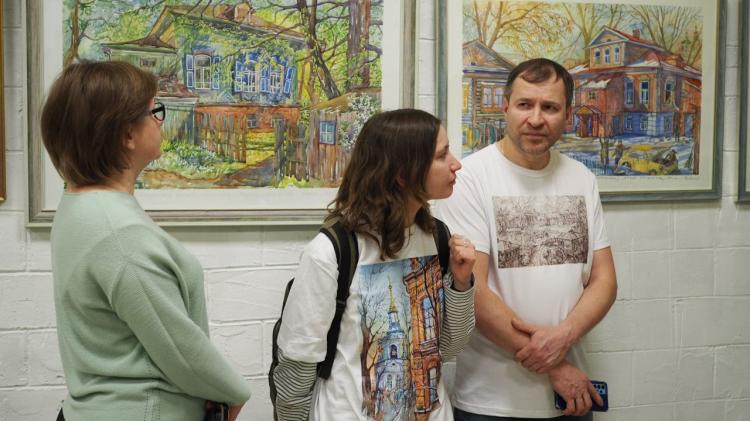 Нина Загребина широко известна своими акварельными работами, на которых запечатлены старые дома областной столицы. Сейчас рядом со зданиями она стала чаще изображать людей - эту тенденцию можно проследить на выставке "Тайны тюменских дворов". Художница призналась, что ей не раз говорили о том, что такие работы реже покупают, но у нее это вызывало внутренний протест. Тогда она сама себе сказала: "А я буду рисовать!".