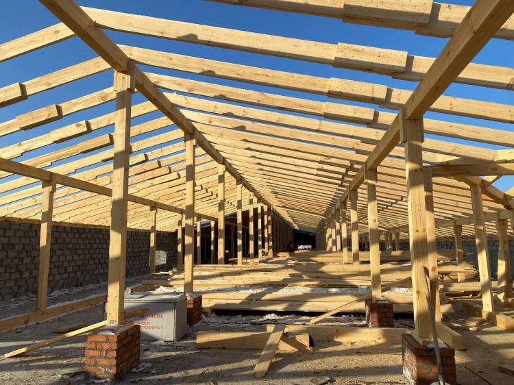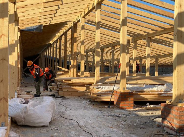 Одноэтажное здание площадью 1 тыс. 528 кв. метров полностью выстроено. Подрядчик – тюменская компания "Успех" - приступила к возведению кровли.