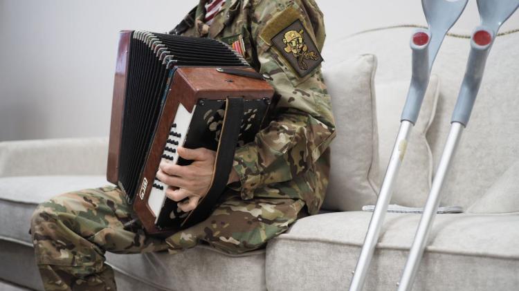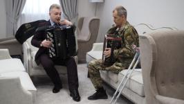 "Когда меня доставили в госпиталь, спросил у волонтеров, есть ли у них гармошка. Обещали спросить у кого-нибудь. И вот одна женщина, муж которой погиб на СВО, захотела передать мне инструмент. Музыка успокаивает. Она сопровождает меня с детсва. У меня дедушка играл на инструменте. Хорошая музыка поднимает дух", — рассказал ветеран.