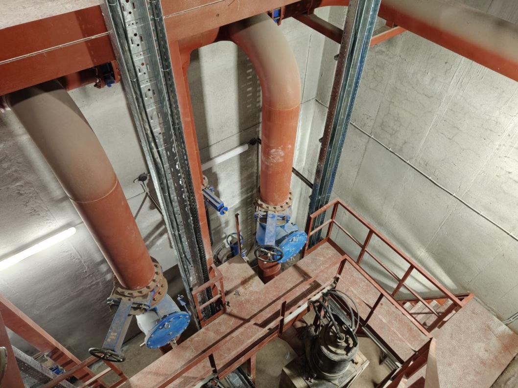 Основное оборудование подземной части станции расположено на глубине 11 м. Здесь смонтированы приемное отделение, сороудерживающий комплекс и насосные агрегаты.