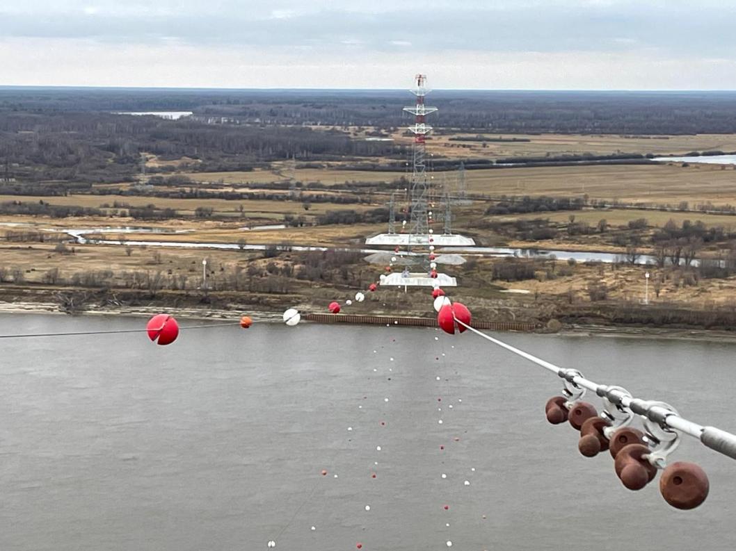 Как сообщает компания "Россети Тюмень", в районе перехода энерготранзита через крупнейший приток Оби специалисты смонтировали свыше 13 км провода, устойчивого к сильному ветру и грозам, установили 11 опор, более 2,5 тыс. изоляторов, 160 птицезащитных устройств и 108 сигнальных шаров-маркеров. Высота двух возведенных переходных опор составила 94 м, что сравнимо с высотой 30-этажного дома.