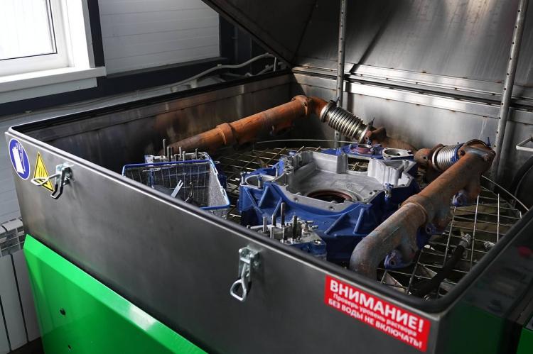 Отметим, что сервисный центр работает в тестовом режиме с декабря, и за это время специалисты уже отремонтировали 10 двигателей и семь коробок передач. Объект укомплектован специализированным оборудованием: системой мойки, двумя постами, кран-балкой грузоподъёмностью 3,2 т для крупно-узлового ремонта. Также здесь есть агрегатная мастерская и другие.