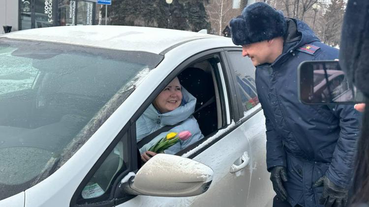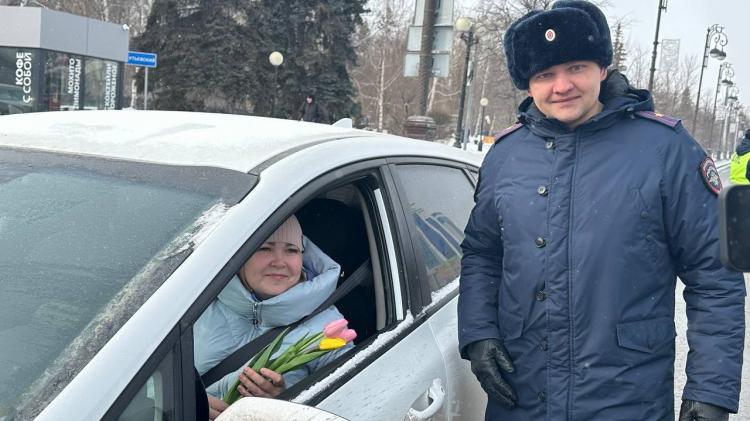 7 марта на дорогах Тюмени общественники и инспекторы также будут поздравлять автолюбительниц с праздником.