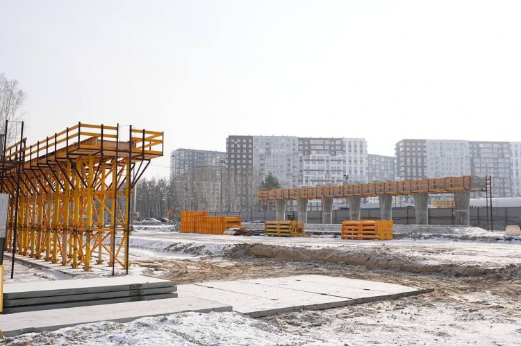 На ключевом объекте коридора – развязке на Московском тракте в районе ул. Джанбровского уже устанавливают четвертую опору. Строят надземный пешеходный переход в районе Академического проезда. Второй возводят у ЖК "Колумб".