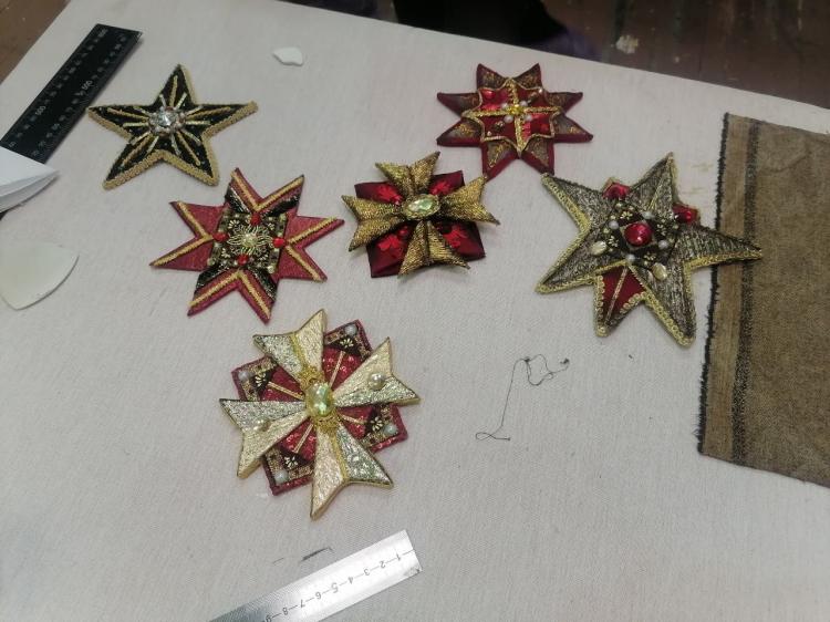 Кроме того, она развенчала миф о том, что художники-декораторы - это такие богемные барышни. На самом деле их работа интересная, но порой весьма тяжелая. Девушки умеют шить на машинке, пользоваться стамеской и ручной пилой, владеют мастерством создания папье-маше, расшивают бисером, не всегда с легкостью, но перекусывают проволоку, владеют технологиями химического крашения и художественной росписи тканей, разбираются в свойствах материалов, клеев, красок лаков, одним словом, универсалы, всех навыков которых не перечислишь.