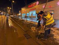 Подрядные организации откачивают воду с участков, где скапливаются талые воды. Кроме того, они удаляют грязь с тротуаров и ограждений. Источники этой грязи очевидны: остатки противо-гололедных материалов, в том числе отсев крошки, которой зимой посыпали тротуары, грунт, смытый с газонов или попавший на дороги с колес транспорта. Смыв грязи позволит значительно уменьшить количество пыли.
