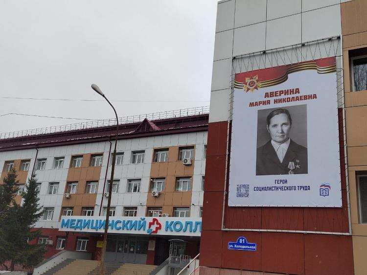 Баннер с портретом Героя Социалистического труда, врача-педиатра Марии Авериной разместили на фасаде здания Тюменского медколледжа 18 марта. Его открыли в рамках федерального проекта "Лица героев".