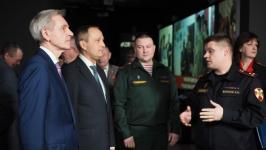 Почетных гостей с мультимедийным проектом познакомил начальник Управления Росгвардии по Тюменской области полковник полиции Андрей Борисов. Он подробно рассказал о направлениях деятельности, получении образования. Отдельно он остановился на стенде, рассказывающем о службе росгвардейцев в зоне специальной военной операции.