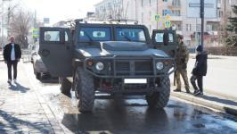 Выставка Росгвардии привлекла тюменцев еще на улице. Там организовали выставку машин. Прохожие фотографировались на фоне двух бронеавтомобилей, общались с их водителями.