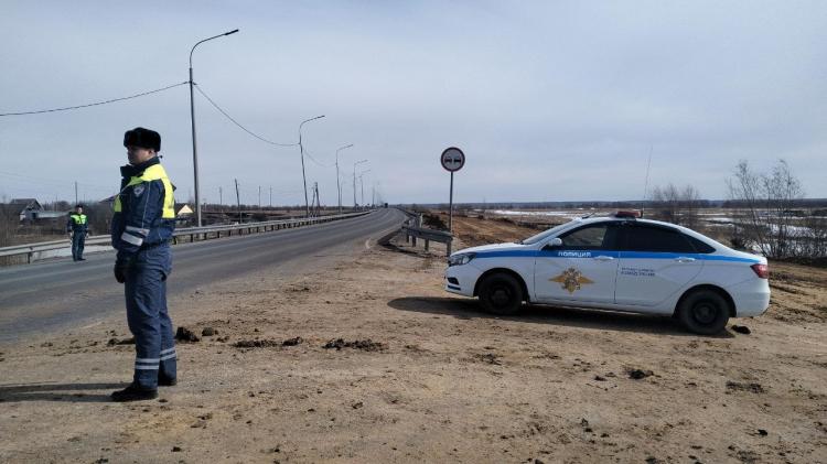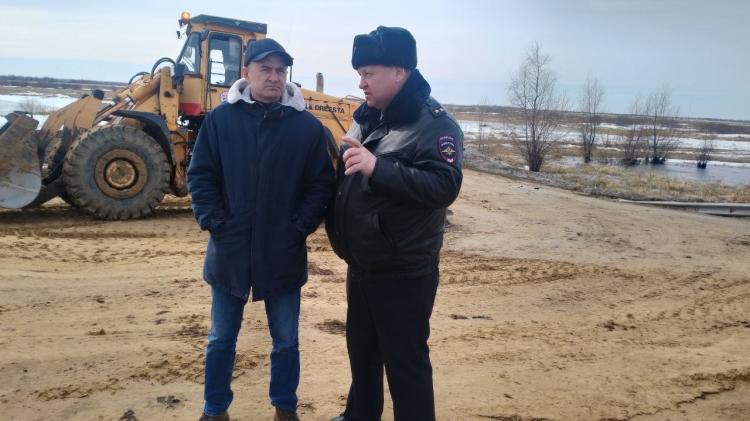 На трассе Тюмень - Омск автоинспекторы обеспечивают безопасность строителям дамбы