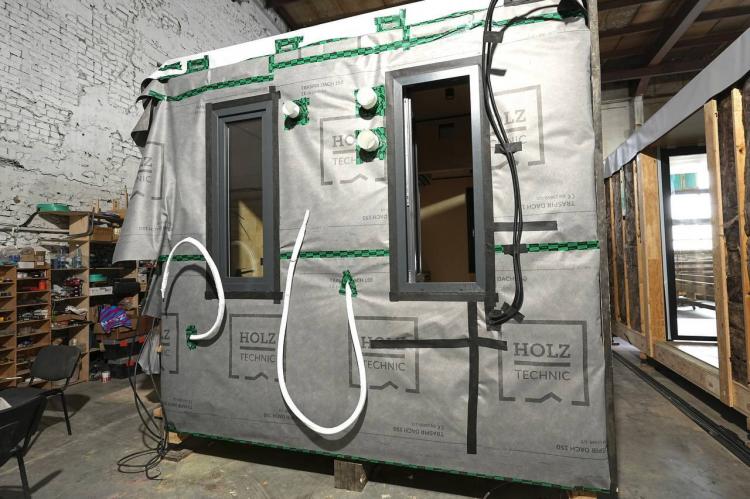 "Пирог" стены составляет влагостойкая фанера. Ее поставщики находятся в Тюмени – это компания "Браст" и комбинат "Свеза". LVL-брус закупают в Югре и Подмосковье. Двухкамерные каленые стеклопакеты толщиной 60 мм - в Омске.