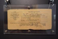 Среди экспонатов – документы, фотографии, предметы быта, графические и живописные работы. Особое место занимает реконструкция жилой комнаты 40-х годов XX века. Здесь на стене за стеклом размещены письма с личными переживаниями тюменцев, на долю которых выпали испытания.