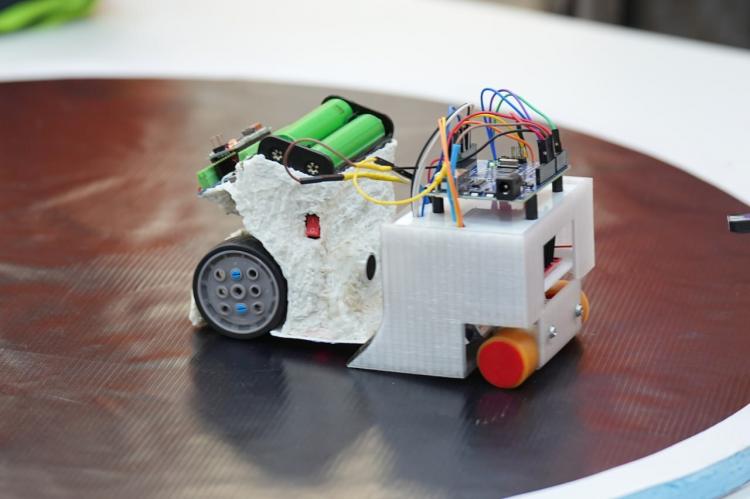 "Чтобы победить, например, в "Сумо 10×10", робот должен поместиться в кубик и весить не более 500 грамм, в "5×5" - не более 100 грамм. Конечно, надо еще прописать программы, встроить датчики, соблюсти другие правила. Но знаете, здесь важна заинтересованность. В этих категориях участвуют младшеклассники, поэтому мы, в первую очередь, хотим, чтобы их глаза загорелись, чтобы они полюбили робототехнику", - заметил судья категорий "Микро-сумо 5×5" и "Мини-сумо 10×10" Владимир Малов.