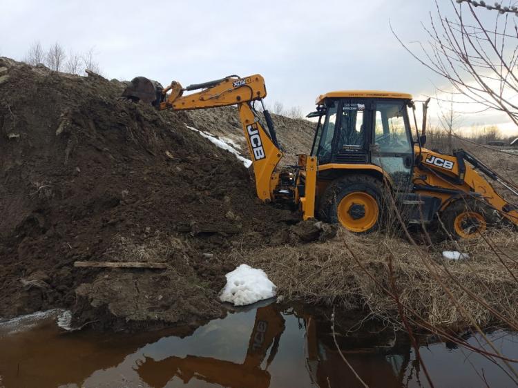 Укреплением дамбы на реке Иртыш в районе пос. Надцы Тобольского района занимаются второй день. Уровень воды резко поднялся. Рабочие перекрыли водопропускную трубу.
