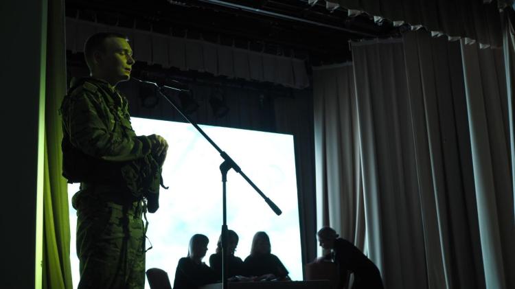 Театрализованный концерт "Время выбрало нас" показали ветераны специальной военной операции, родные погибших военнослужащих в малом зале ДК "Нефтяник" в Тюмени 26 апреля.