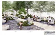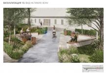 Во втором проекте будет использована чуть меньшая площадь аллеи Молодоженов. Комплексный подход при благоустройстве территории ориентирован на создание комфортных пешеходных связей, обустройство площадок для отдыха с учетом уже сложившейся дорожно-тропиночной сети. Здесь будут фонтан, арт-объекты, площадки.