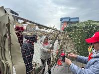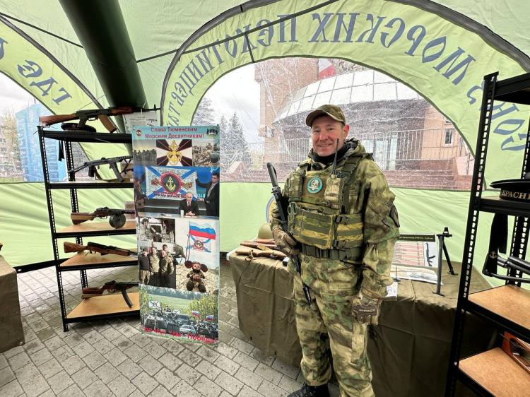 В 11 час. эстафета прибыла к Технопарку, где уже действуют площадки по плетению маскировочных сетей, открыта тематическая фотозона, морские пехотинцы развернули выставку оружия.