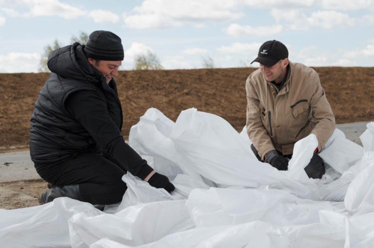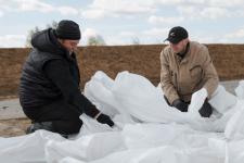 В Ишимском районе волонтеры укрепляют откосы насыпей пленкой и мешками с песком