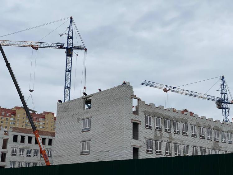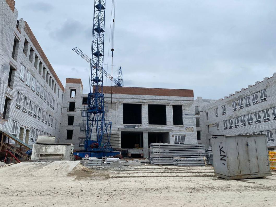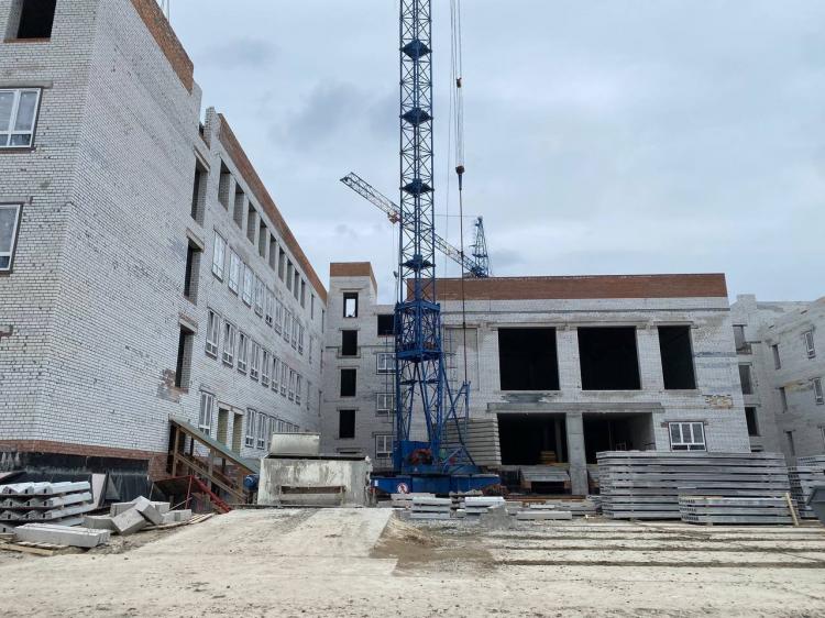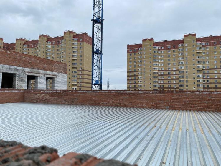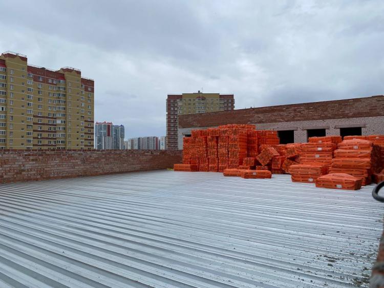 Всего 80 специалистов заняты разными видами работ на стройке школы. Параллельно с внутренней отделкой, кладкой кирпича на верхнем этаже начинается подготовка к монтажу кровли. Она будет мягкой с пенополистиролом и мембраной. 1500 кубометров пеноплекса уже завезено на площадку. Еще 1000 кубометров получат на днях.