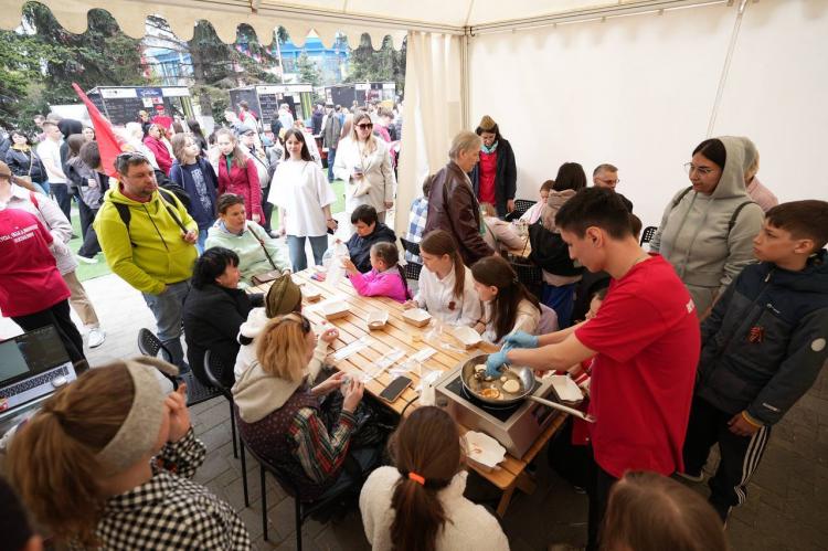 С 12 до 18 часов на площадке гастрофестиваля можно поучаствовать в кулинарных и ремесленных мастер-классах. Также на Городской площади проводится фестиваль "Правнуки Победы" и работает мобильный пункт "Почты России", откуда можно отправить открытку Победы.