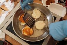 "Это сочетание грузинского гостеприимства и тех оладушек, которыми наши солдаты могли себя порадовать. Это дань тем дням победным, радостным. Мы использовали грузинскую пшеничную муку в нашей рецептуре, полевые сибирские ягоды, добавили с Аджарии мёд", — рассказала информационному агентству "Тюменская линия" управляющая рестораном "Грузинка Нани" Яна Шишкина.