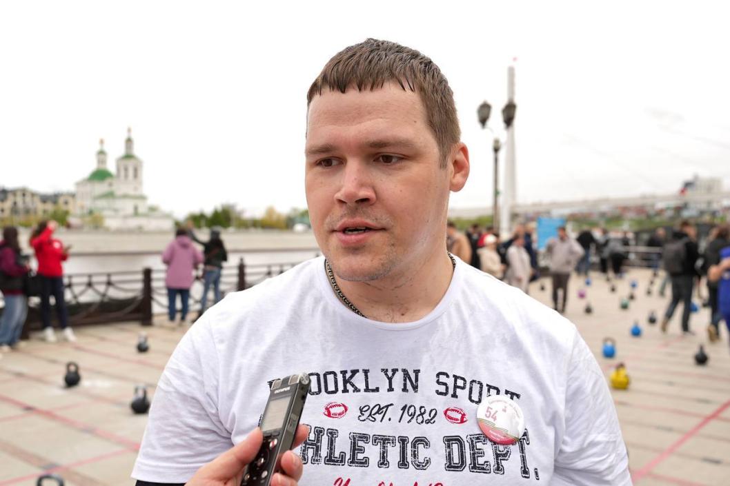 Тюменцы разных возрастов должны были сделать армейский рывок гирь весом от 6 до 32 кг в течение девяти минут. Одним из участников спортивного события стал Олег Иванов.