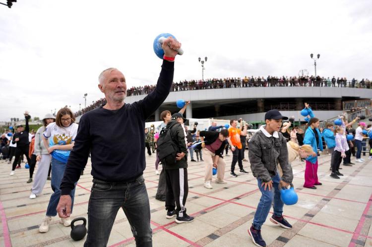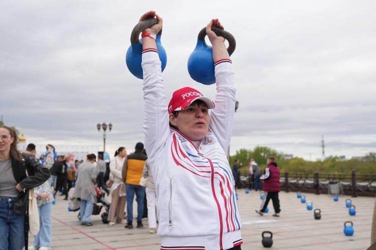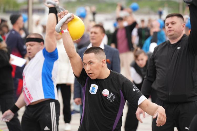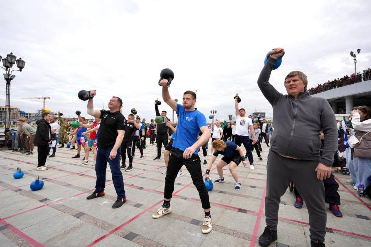 Новый рекорд России по самому массовому поднятию гирь установили тюменцы на набережной в День Победы. Участниками спортивно-патриотического мероприятия "Сила единства – вес Победы! Поднимем гири, чтобы поднять дух региона" стали 590 человек.