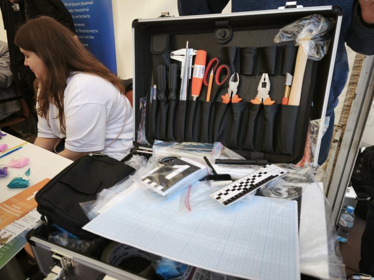 Особый интерес у ребят вызвала лаборатория криминалиста, где колледж искусственного интеллекта, креативного мышления и мастерства ТюмГУ демонстрировал криминалистическое оборудование. Благодаря дактилоскопическому порошку с помощью магнитной кисти или перекатывания можно выявить следы пальцев и ладоней рук, которые могут оставаться на месте преступления.