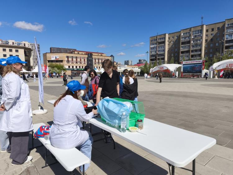 "Мы привезли из Тобольского многопрофильного техникума искусственную собаку, чтобы по ней ребята изучали анатомию животного. Также взяли с собой кролика. Можно померять ему температуру, а перкуссионным молоточком послушать его внутренние органы. И, конечно, мы рассказываем о том, как к нам поступить", - поделилась студентка техникума Нина Мальцева.