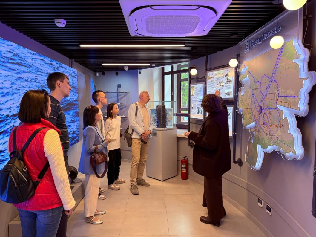 Гости узнали, как развивалась система водоснабжения в Тюмени, как устроена очистка воды и стоков, им показали уникальные экспонаты: фрагмент 160-летнего деревянного водопровода, запорную арматуру разных лет, инструменты рабочих прошлого века, образец первой воды, очищенной на Метелевском водозаборе в 1981 году.