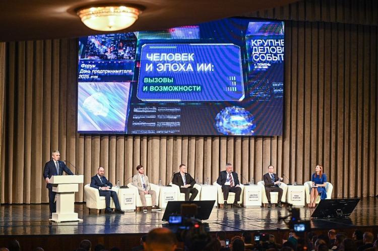 Об этом сказал губернатор Тюменской области Александр Моор во время пленарной сессии "Человек и эпоха ИИ: вызовы и возможности" форума "День предпринимателя-2025" в ДК "Нефтяник" 27 мая.