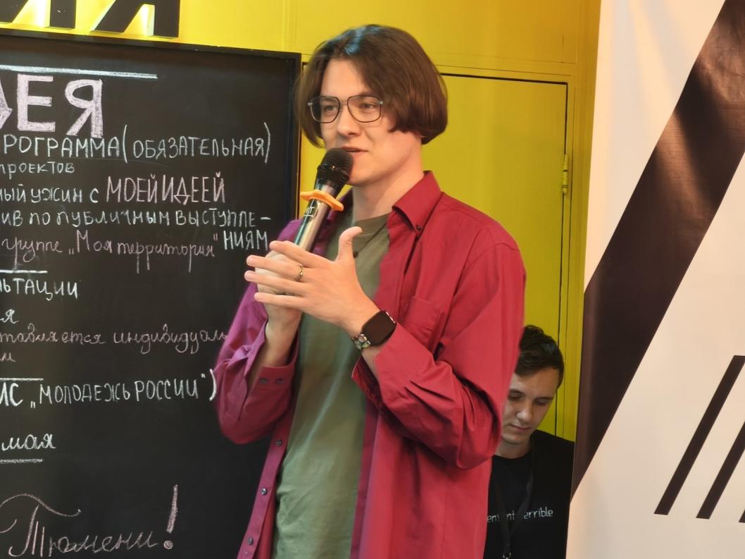 Интенсив по публичным выступлениям стал финалом образовательной программы перед защитой на конкурсе. Спикером выступил Роман Илларионов. В 2022 году он сам стал победителем "Моей идеи". За это время он был автором и соавтором более 15 инициатив. Сейчас является руководителем проекта подкастов о гик-культуре "Вечерний ФанДом". Тюменец дал аудитории советы, как бороться с волнением, в какой одежде нужно приходить на защиту, как структурировать свое защитное слово. Например, в презентации важно не делать более восьми слайдов, использовать графические схемы для легкого восприятия материала, избегать аббревиатур и текста на одной странице.