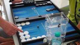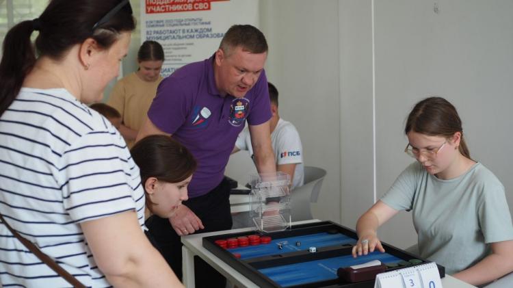 С 12 до 14 часов состоялся мастер-класс по спортивным нардам. Президент федерации нард Тюменской области Иван Хаймин объяснял детям и подросткам правила игры. С 2023 года он популяризирует этот вид спорта. Бесплатные мастер-классы проводят на выездных мероприятиях, организуют занятия на своей территории. Эта игра, по словам руководителя федерации, развивается усидчивость и логическое мышление. Кроме того, нарды связаны с арифметикой. Научиться играть легко. Нарды более динамичные, чем шахматы, и интереснее, чем шашки, заверил Иван Хаймин.