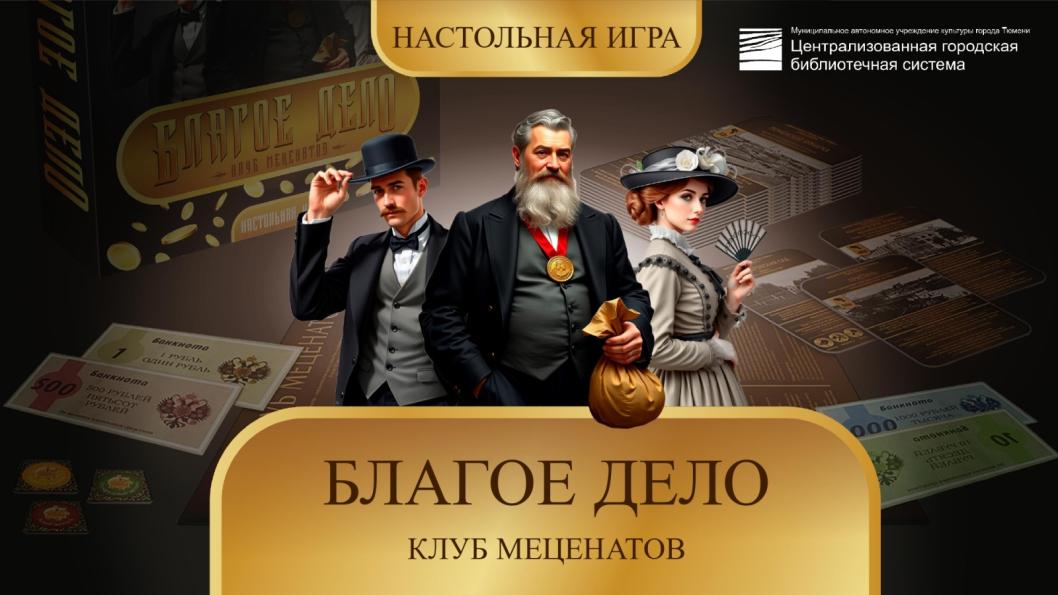 Среди других проектов, представляющих Тюменскую область – экономико-историческая игра "Благое дело. Клуб меценатов". Это приключение, в котором игроки становятся купцами конца XIX — начала XX века: они торгуют, строят, организуют балы, совершают благотворительные поступки и преображают собственный город. В игре представлены 30 реальных исторических персонажей и более 20 подлинных локаций.