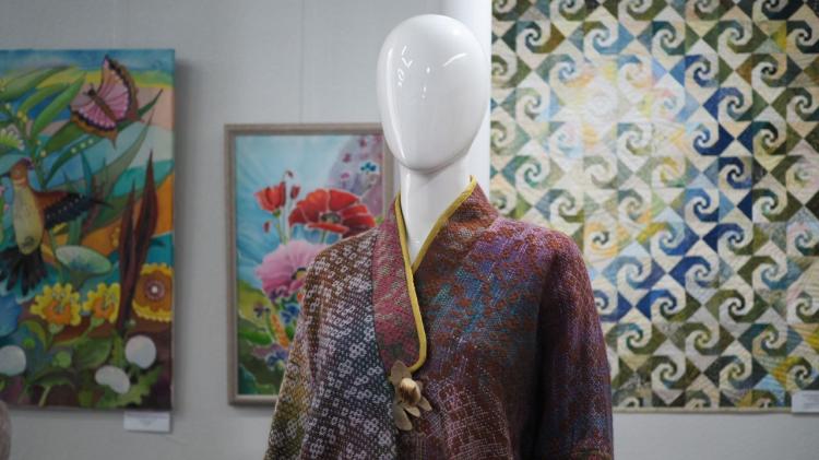 Ткачество и панно из природных материалов представила мастер, художник декоративно-прикладного искусства, член Союза художников России Ольга Козловская. В одном панно автор совместила и ковровую, и ремизную техники. Мастер называет это своей маленькой гордостью. Пальто, представленное на манекене, Ольга Козловская показывала на фестивале "Весна. Кросна" в Перми. Для этого изделия она самостоятельно выткала ткань.