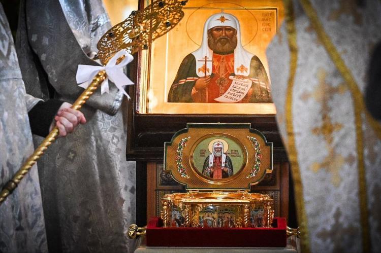 “Со смирением и кротостью, соединенными с ревностью о деле Божием и горением духа, совершал святейший Тихон вверенное ему служение, умоляя не сходить с пути крестного и хранить верность православной церкви”, – произнесли в храме.