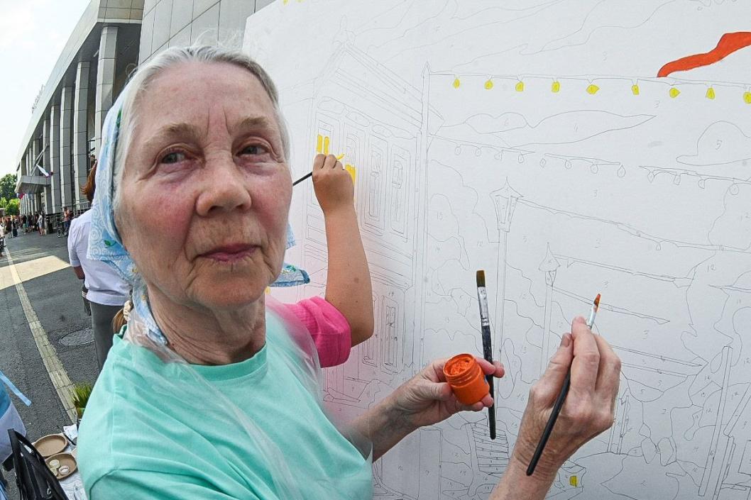 Раскрасить фрагмент картины мог любой желающий. Например, 77-летняя пенсионерка Светлана Одинцова всегда с радостью принимает участие в городских активностях. "Я очень люблю рисование, танцы, занимаюсь в университете старшего поколения. Как-то участвовала в мероприятии по вязанию на улице Дзержинского. Мне нравится причастность к общественным событиям", - отметила тюменка.