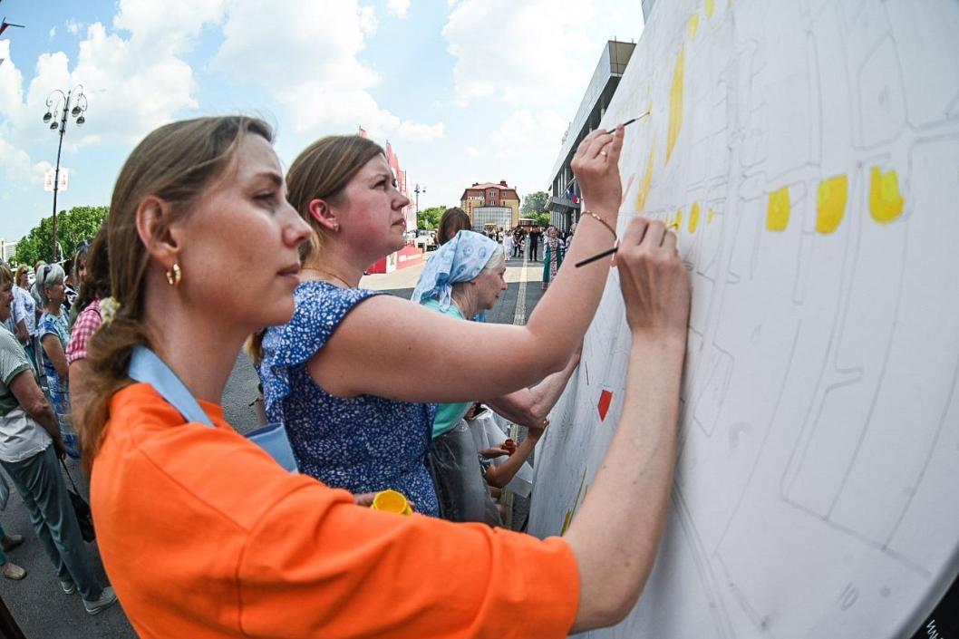 Тюменцы вместе нарисовали улицу Дзержинского на двухметровом холсте