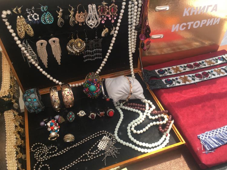 Отдельное место в экспозиции занимают ткани – адрас, чакан, а также парча и бархат с традиционным шитьём, значительной частью культурного наследия таджиков.
