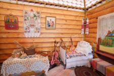Экспозиция включает в себя различные предметы крестьянского быта. Это модель печи, веретено, жернов, сундуки, красный угол, ухваты, утюги, хлебные лопатки, деревянные ведра, коромысло, корыто, самодельный ткацкий станок. На последнем тюменцы могут попробовать сплести ковер из длинных кусочков ткани.