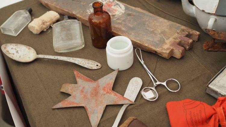 Здесь же выложены предметы, найденные во время полевых поисковых работ. Заместитель командира поискового отряда "Память сердца" лицея №34 Тюмени Ангелина Подкорытова рассказала, что ребята ежегодно выезжают на раскопки, где ищут останки солдат, пропавших без вести во время Великой Отечественной войны.